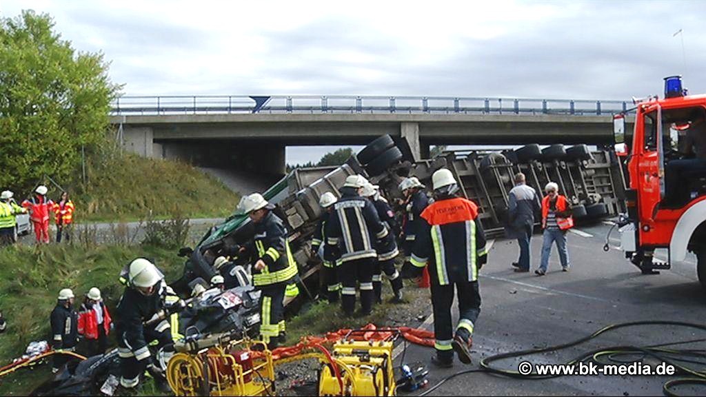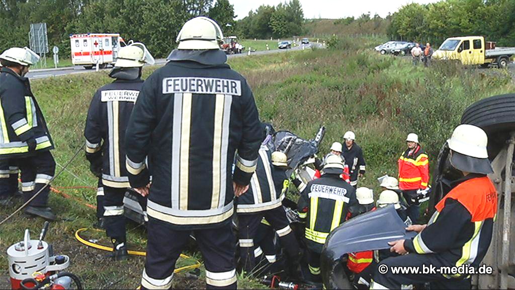 Drei Tote auf der B 22 - Ehepaar und Sohn aus Niederbayern übersehen Lastwagen und sterben Leuchtenberg. (phs) Ein Fahrfehler, eine Unaufmerksamkeit oder ein technischer Defekt kostete einem Ehepaar aus Vilshofen (beide 45) und seinem 21-jährigen Sohn am Donnerstagnachmittag das Leben. Die Niederbayern waren gegen 14.40 Uhr auf der alten B 14 aus Wernberg kommend Richtung Wieselrieth unterwegs. Beim Abbiegen in die B 22 Richtung Cham war ihr Toyota Avensis laut Zeugenaussagen "ungebremst oder fast ungebremst", in jedem Fall aber so schnell, dass ein Lastwagen aus Weißrussland den Wagen auf der Fahrerseite erfasste. Der Brummi war von Weiden Richtung Tännesberg unterwegs. Das Bremsmanöver des Osteuropäers war umsonst. Der Laster schob den Toyota nach links von der Fahrbahn. In der Böschung kippten beide Fahrzeuge um. Der Lkw fiel dabei so unglücklich mit dem Führerhaus auf das Auto, dass er die Insassen regelrecht zerquetschte. Obwohl die ersten Rettungskräfte keine zehn Minuten später an Ort und Stelle waren, konnten sie nichts mehr für die Opfer tun. Ein Feuerwehrmann berichtete dem Vohenstraußer Polizeichef Richard Wagner, dass ein Mann im Auto noch ansprechbar war, aber kurze Zeit später den Todeskampf verloren hatte. Der etwa 40 Jahre alte Lkw-Fahrer, dessen Laster Holz transportiert hatte, erlitt einen Schock. Die B 22 war bis 18.30 Uhr gesperrt. Sechs Feuerwehren, THW und eine Kranfirma hatten mit der Bergung alle Hände voll zu tun. |
